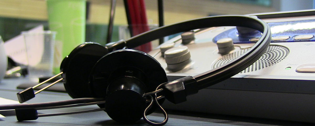 Simultaneous interpreters work in booths equipped with devices that allow them to hear the speaker clearly through the use of headphones, while at the same time translating by speaking into a microphone that reaches the headphones of participants. In cases where interpretation is made into more than one language, two-channel headphones are required and a separate booth for each language.